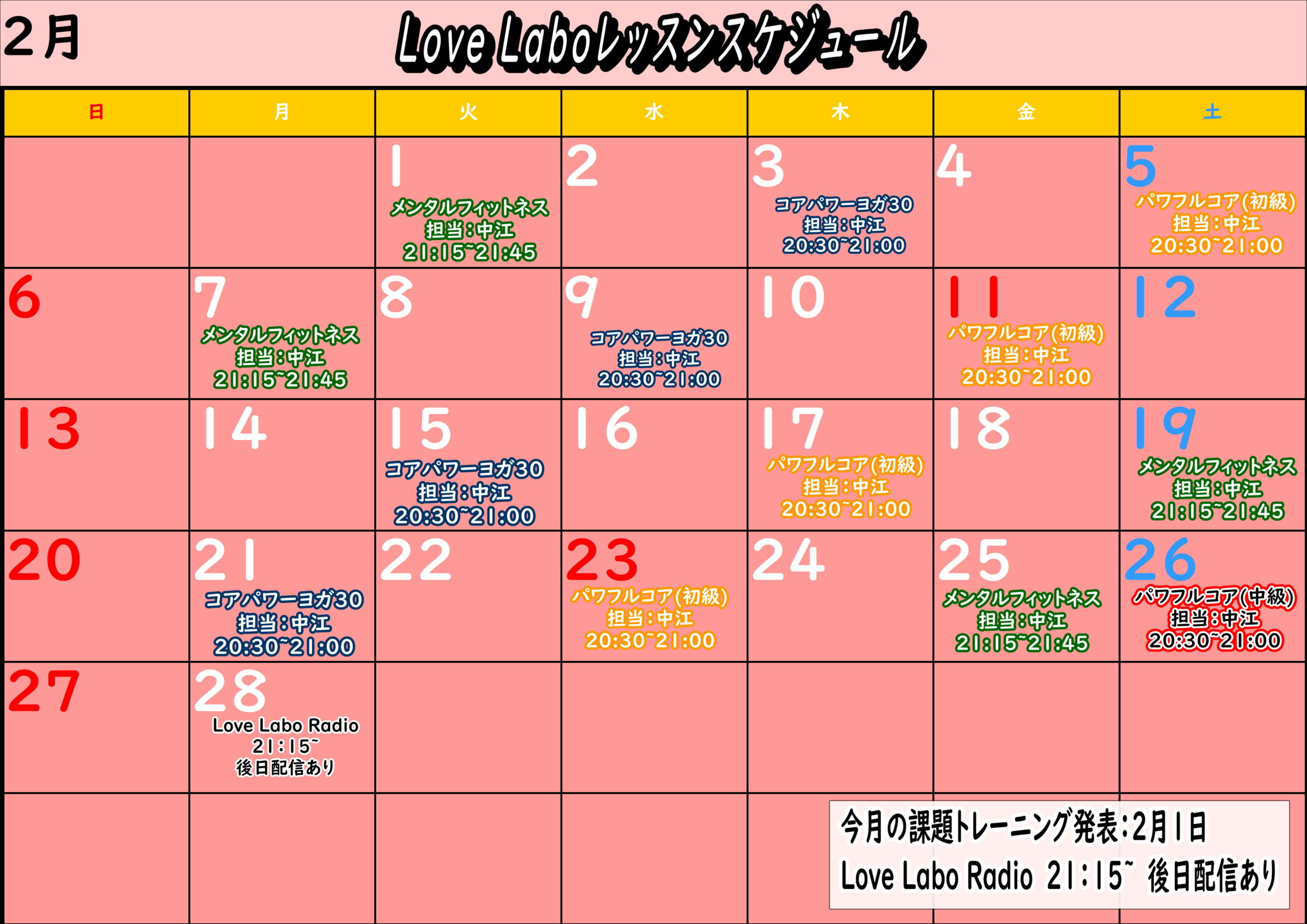 // 2月レッスンスケジュール