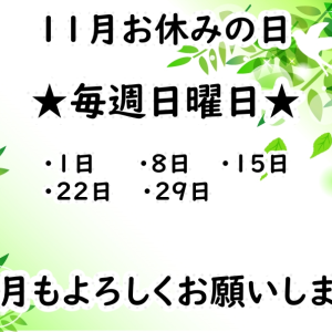 11月のお休みはこちら!